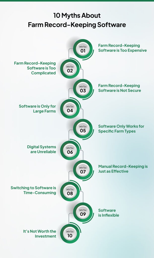Let’s debunk the top 10 myths surrounding farm record-keeping software, shedding light on its affordability, accessibility, and adaptability for farms of all sizes and types: