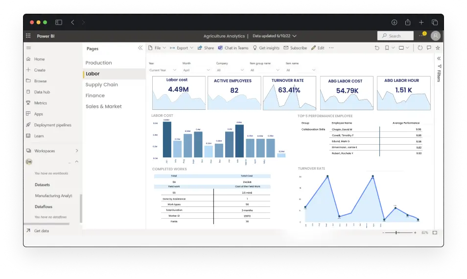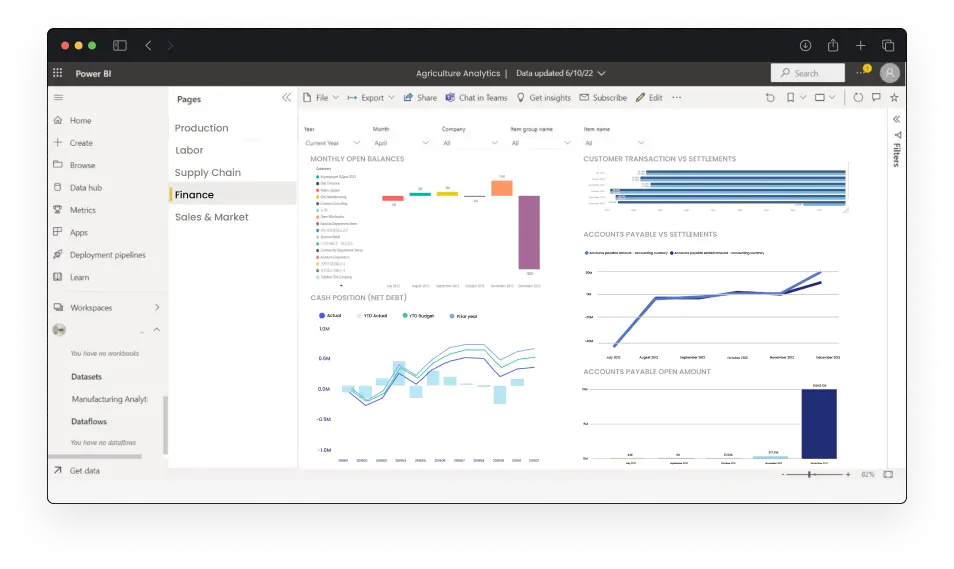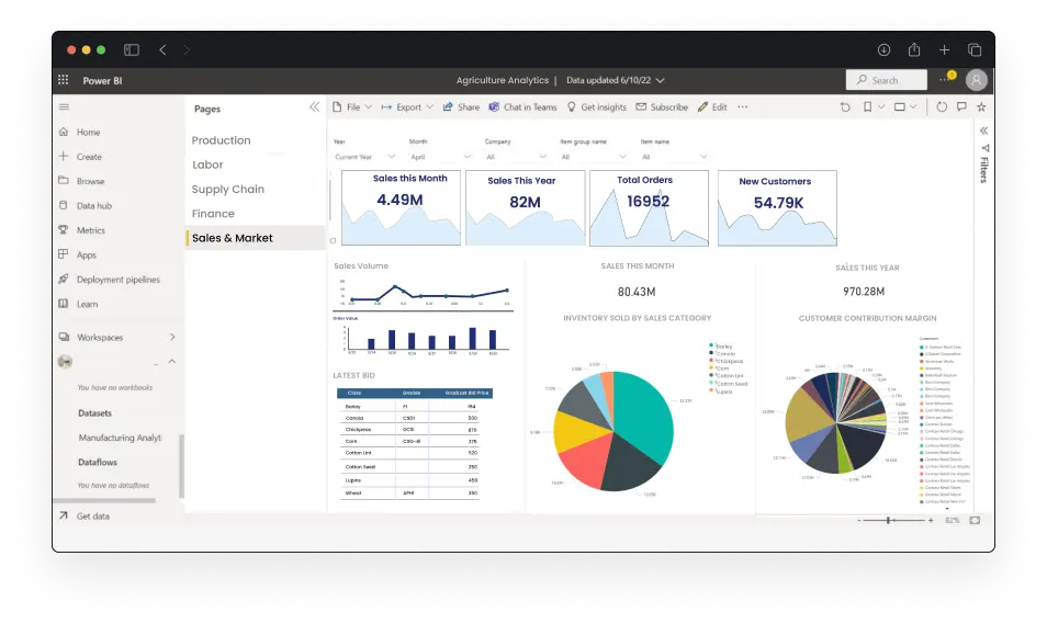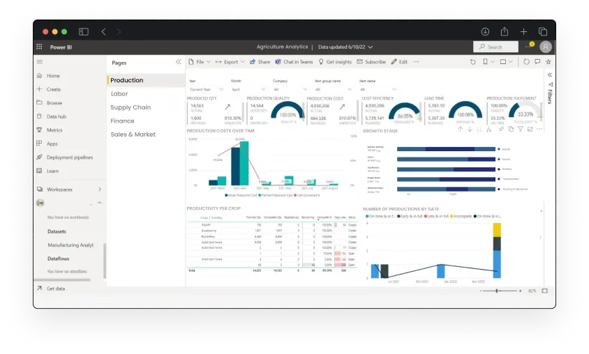 For an automated Power BI dashboard tailored to the agriculture industry, consult with our experts at Folio3 AgTech. We'll guide you through data integration, transformation, modeling, and automated updates to deliver a customized, real-time unified solution for your agricultural insights.