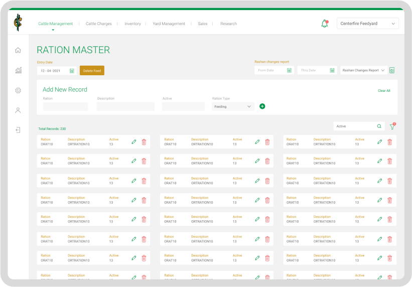 All the movement of cattle within cactus feeders, respective farms on a certain day can be tracked, and other pen movements can be decided as per space availability and other parameters.