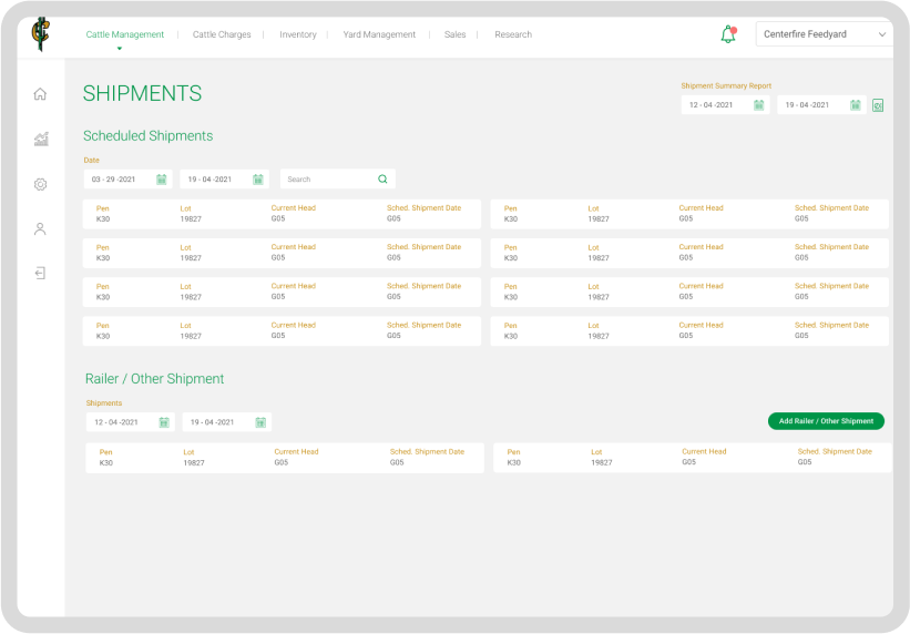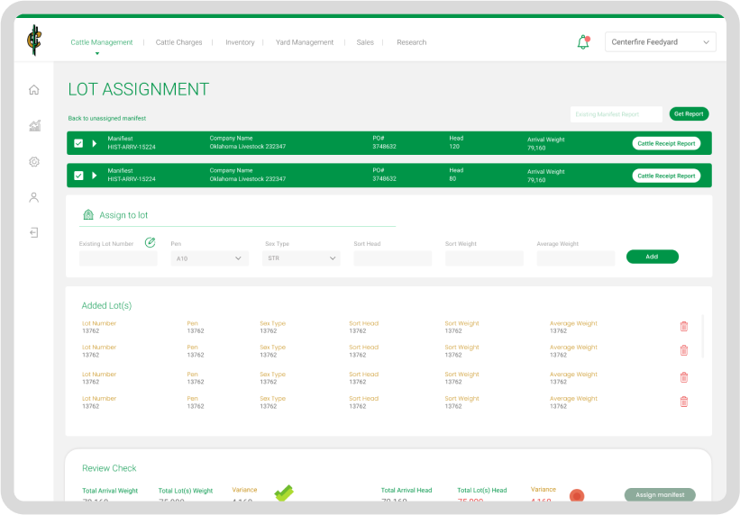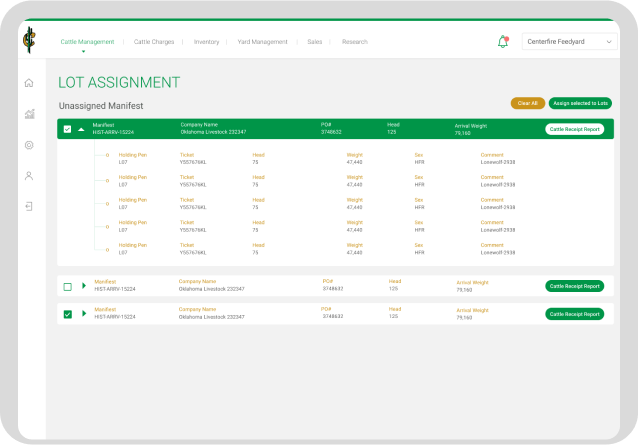 Lots of selected feed yards can be assigned and managed on a single screen.