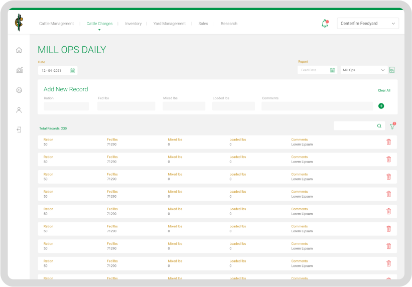 It helps you have daily reconciliation report for the feeds for the specific dates and helps track inventory of the mills.