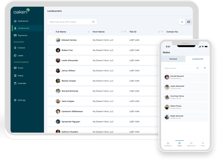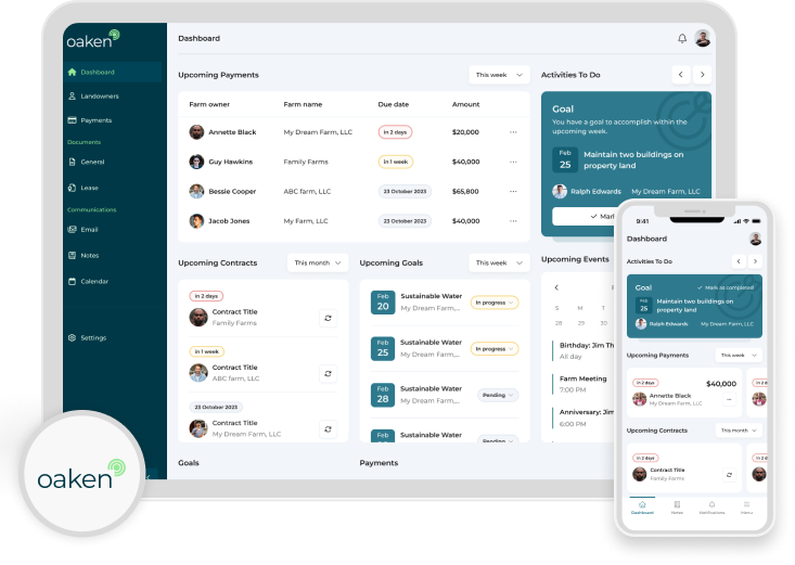 Oaken received a robust platform allowing growers to keep track of all landowners on a single platform, manage data, receive reminders for important dates, access real-time analytics, make decisions on the go, and assign relationship managers effectively.