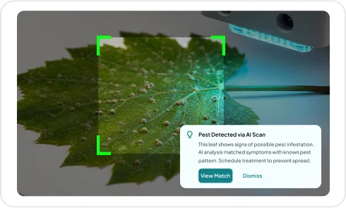 Capture field-level images and receive accurate pest IDs powered by agronomic databases and visual recognition tools.