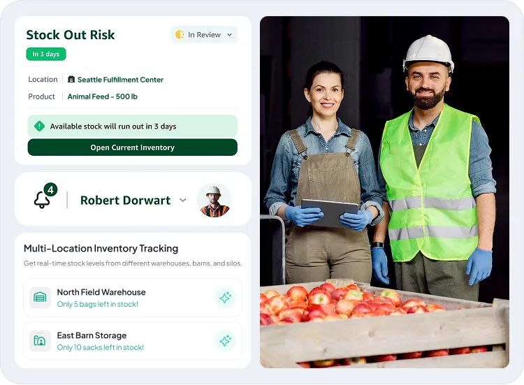 Seed, feed, chemicals, and fuel sit in separate systems, or aren’t tracked at all. Reorder points get missed, lot traceability relies on clipboards, and stock levels are always uncertain.