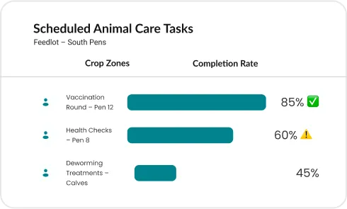 Track pen-level intake, weight gain, health treatments, and closeout economics, giving your feedlot managers real-time cost-of-gain visibility.