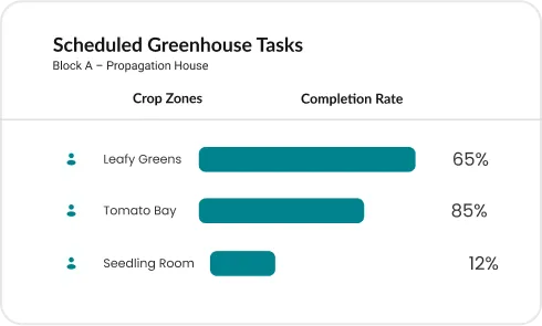 Monitor your climate-controlled environments: temperature, humidity, irrigation, and crop progress with sensor data feeding into operational records.