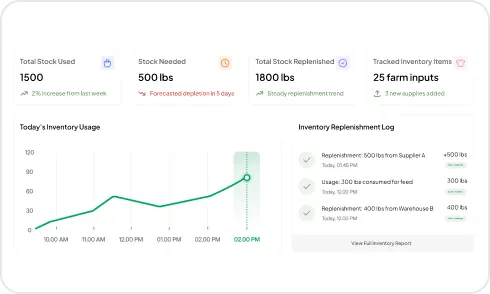 Manage and optimize your inventory of seeds, feed, fertilizers, and other inputs in real time and ensure timely purchases to maintain healthy stock levels at all times.