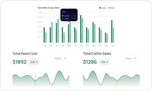 Create customizable dashboards to monitor key performance indicators relevant to your farm's operations. Get quick insights into financial health.