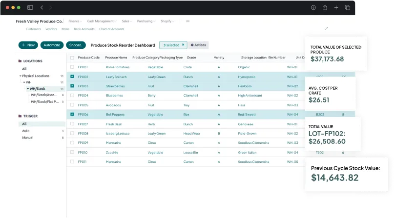 Control operational chaos by connecting your farm, field, and distribution data into a single inventory flow.