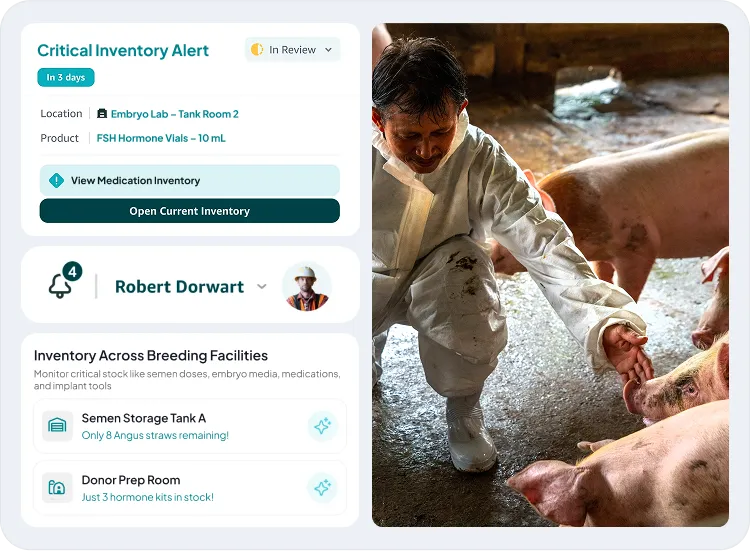 Manage every stage of your breeding program, from estrus detection to embryo transfer, with AI livestock breeding software that unifies genetic data, inventory, scheduling, and reproductive outcomes in one platform.
